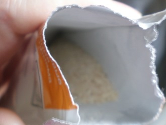 - Пакетик порошка (соответствует пяти граммам или одной чайной ложке) заливают 150 миллилитрами прохладной воды. Суспензию нужно хорошенько перемешать и выпить, запив стаканом воды. Вместо воды можно использовать сок, молоко, кефир или йогурт.