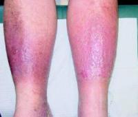 - Стадия II – стойкие отеки, нарушения пигментации кожи; некоторые участки кожи уплотняются, кожу над ними нельзя собрать в складку (липодерматосклероз), на коже появляются покраснения, сопровождающиеся зудом и мокнутием (экзема).