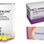 - Троксевазин. Производится болгарской фармацевтической фирмой «Фармахим». Является химическим производным витамина P (рутина). Оказывается противоотечное действие на организм, а также улучшает состояние венозных стенок. Известен также под названиями «Венорутон» и «Троксерутин». Выпускается в форме таблеток, гелей и растворов для инъекций. За 50 таблеток придется отдать 400 рублей.
