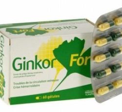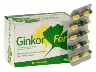 - Гинкор Форт. Производится французской фармацевтической компанией «Бофур Ипсен». Состоит из экстракта двулопастного гинкго, троксерутина и гидрохлорида гептаминола. Лекарство имеет венопротекторный и венотонизирующий эффект. Форма выпуска — гель для наружного применения и капсулы. Можно применять во время беременности на 2 и 3 триместре. При гипертериозе принимать препарат запрещено. Цена за 30 таблеток — 555 рублей.