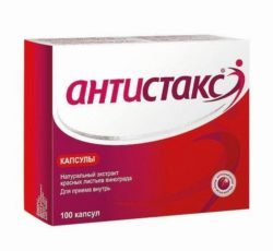 - Антистакс. Производится немецкой компанией «Берингер Ингельхайм». Представляет собой биологически активную добавку. Основной лекарственный компонент — сухой экстракт листьев красного винограда. Оказывает венотонизирующий эффект. Представляет собой таблетки, которые покрыты защитной оболочкой. Цена за 20 таблеток — 560 рублей.