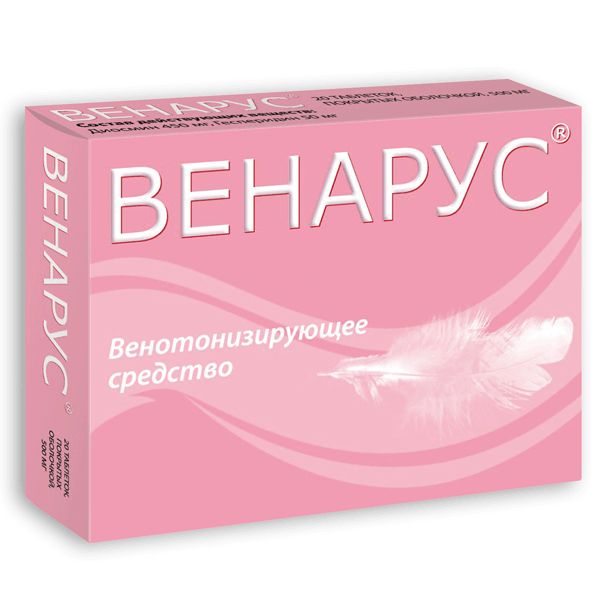 - Венарус. Производится в России фармацевтической компанией «ЗАО Оболенское». В его состав входят те же лечебные вещества — диосмин и гесперидин. Принцип действия и фармакология идентичны детралексу. Представляет собой таблетки, которые покрыты защитной оболочкой. Препарат нельзя использовать в период беременности и лактации. Цена — 530 рублей за 30 таблеток.