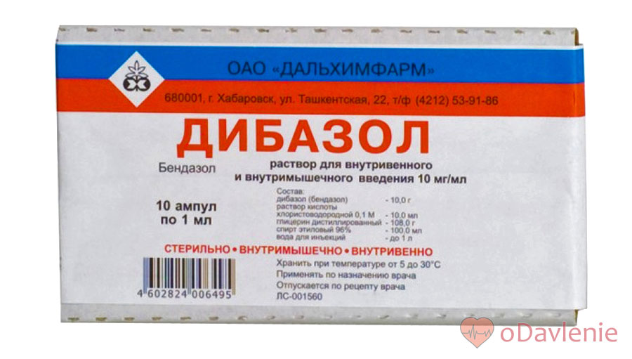 - вазодилататор Дибазол, или инъекция Бендазола. Уменьшает мускулатурное напряжение сосудов при диагнозе гипертензия.