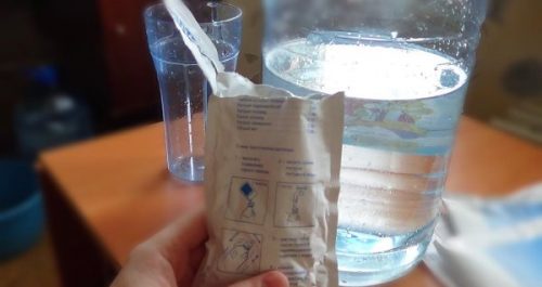Согласно официальной инструкции, 1 пакетик-саше с лекарственным средством разводится в одном литре воды (заблаговременно прокипяченной и остуженной).