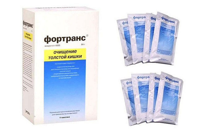 Четыре порошка слабительного средства Фортранс хватает для полного очищения кишечника человека весом около 80 кг