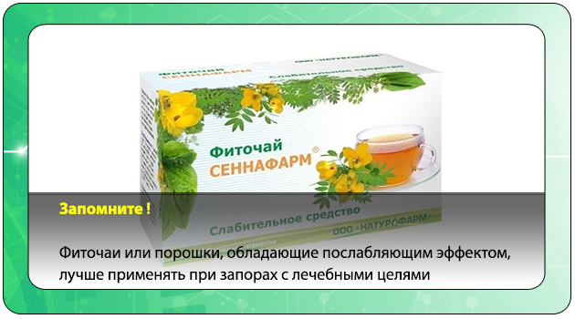 В аптеках можно приобрести специальные фиточаи или порошки, обладающие послабляющим эффектом. Вот несколько примеров: