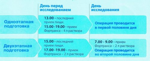 Принимать средство необходимо в вечернее время за день до обследования. Терапевтическую дозу разбивают на несколько приемов по 200 мл раствора с интервалом в 20 минут. Также возможен вариант употребления половины порции в вечернее время накануне и утром непосредственно перед обследованием. Последняя доза должна быть принята не позднее, чем за 3–4 часа до проведения манипуляций.