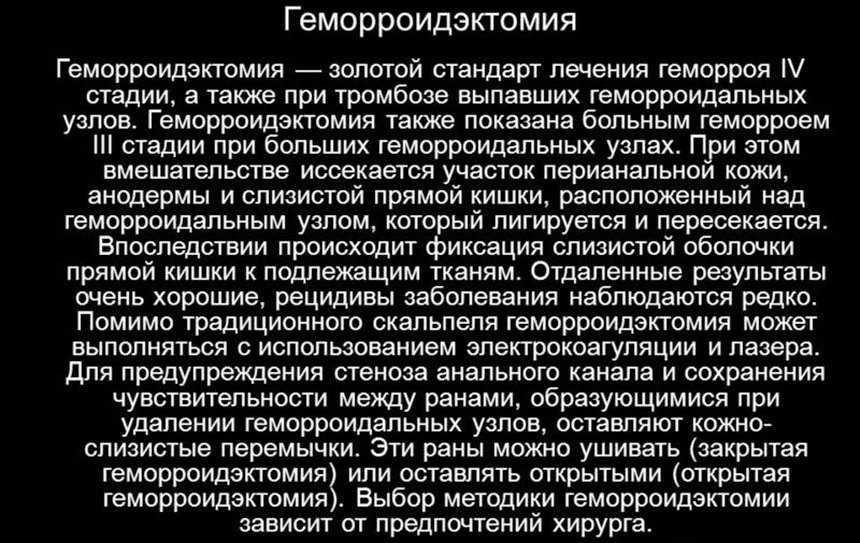 Геморроидэктомия золотой стандарт лечения геморроя IV стадии, а также при тромбозе выпавших геморроидальных узлов