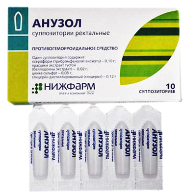 3. Свечи Анузол или Нео-Анузол. Именно эти суппозитории отличились быстрым и эффективным лечебным воздействием на внешний геморрой. Обладают широким спектром действия. Лучше всего их применять при геморрое с кровотечением и слизистыми выделениями из прямой кишки. За счет их применения наблюдается следующий терапевтический эффект: