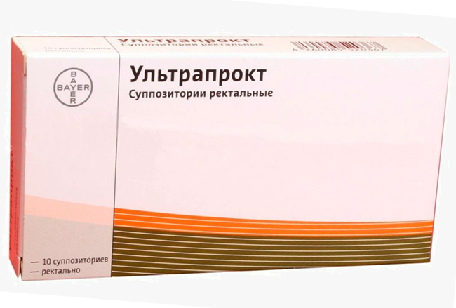 - Ультрапрокт. Сильнодействующий препарат, показан при воспалениях, нагноениях, обширных отеках.Одинаково хорошо воздействует на внутренний и внешний геморрой, обезболивает, обладают антибактериальным и противоопухолевым эффектом. В состав включен анестетик цихнокаин и флуокортолон с выраженным противовоспалительным действием.
