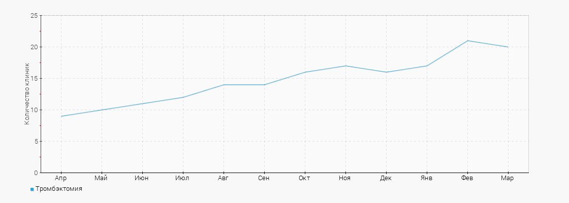 - Количество клиник с услугой Тромбэктомия